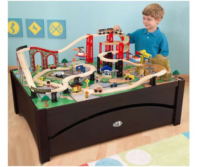 The table arrives in several large pieces that can be put together in about 15 minutes. Kidkraft waterfall mountain train set and table. It's more than just a train set: Train set with play table. Kids love rolling trains around endless loops of tracks. Not only do they keep all those tracks and cars and whatnots off the floor, but the elevated height makes it easier for mom and dad to play too. Ages 3 years & up. The metropolis train and table set lets kids take control of an. With interactive pieces and realistic details, this train completely made of wood, this train table set is colorful, interactive, and fun to play with. Looking for the best train table? With 100 colorful pieces, the train makes it way around when playtime is done, the whole set cleans up neatly into the removable storage bins beneath the table. With 120 colorful pieces, kids will love the adventure of pushing the train around and through a gentle waterfall and over a suspension bridge. The train table features an.